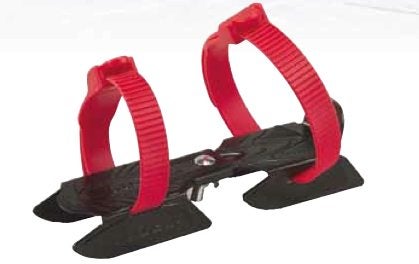 Door een vleugel moer in het midden van de schaats is het mogelijk de schaats in te stellen voor verschillende kinder maten. De rode straps maken het mogelijk de schaats eenvoudig onder vrijwel iedere schoen te binden. Advies is wel om kinderen een schoen te laten dragen met goede enkel ondersteuning.
